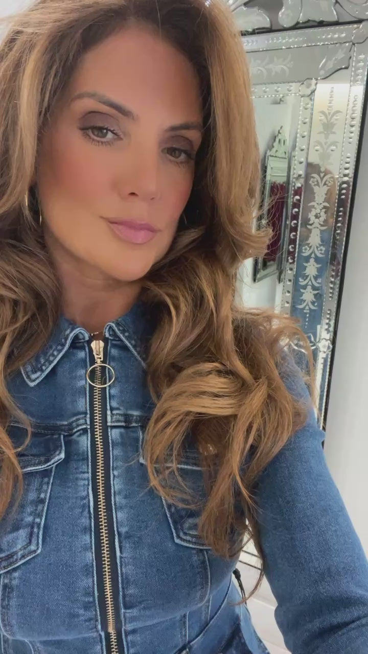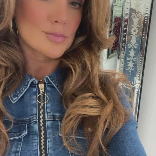 This women’s denim zip dress combines the look of classic denim with modern design details. The stretch fabric moves with you, while the flattering shape and luxe gold hardware make it a standout piece in any wardrobe.