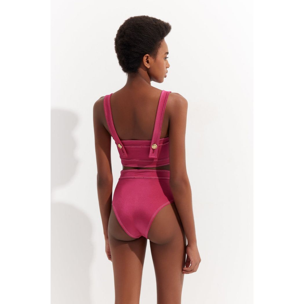 With its unique denim-inspired style, Lavinia Bandeau w/ Gold Buttons is here to steal the show. The glinting gold buttons add a dash of glamor to its playfulness, while the contrast stitching accentuates its denim-inspired elements. The high-waisted fit of the bikini bottom creates a flattering silhouette, and you can style the versatile bandeau top with shorts and sandals for a casual yet sexy summer look.